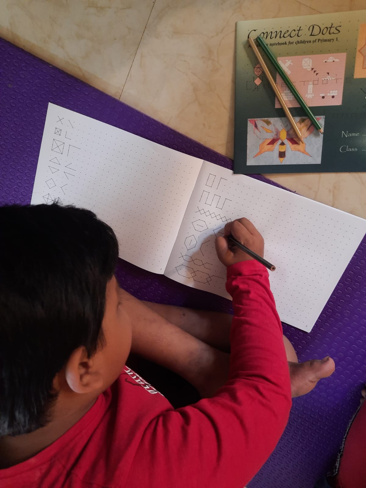 The book is graded and the pages, if done in given order increases attention span, develops observation and creativity and also brings steadiness of the hand – a prerequisite to hand writing.