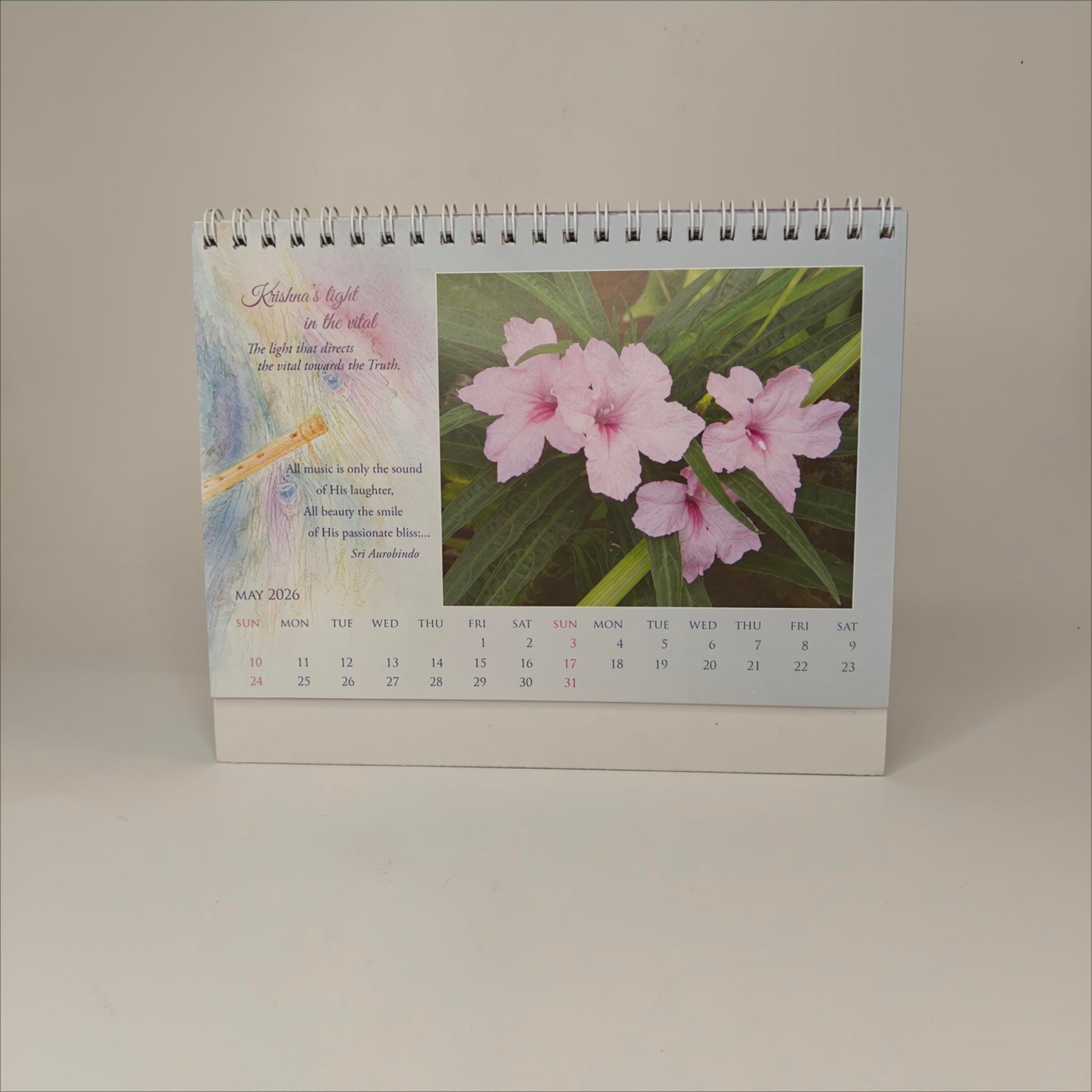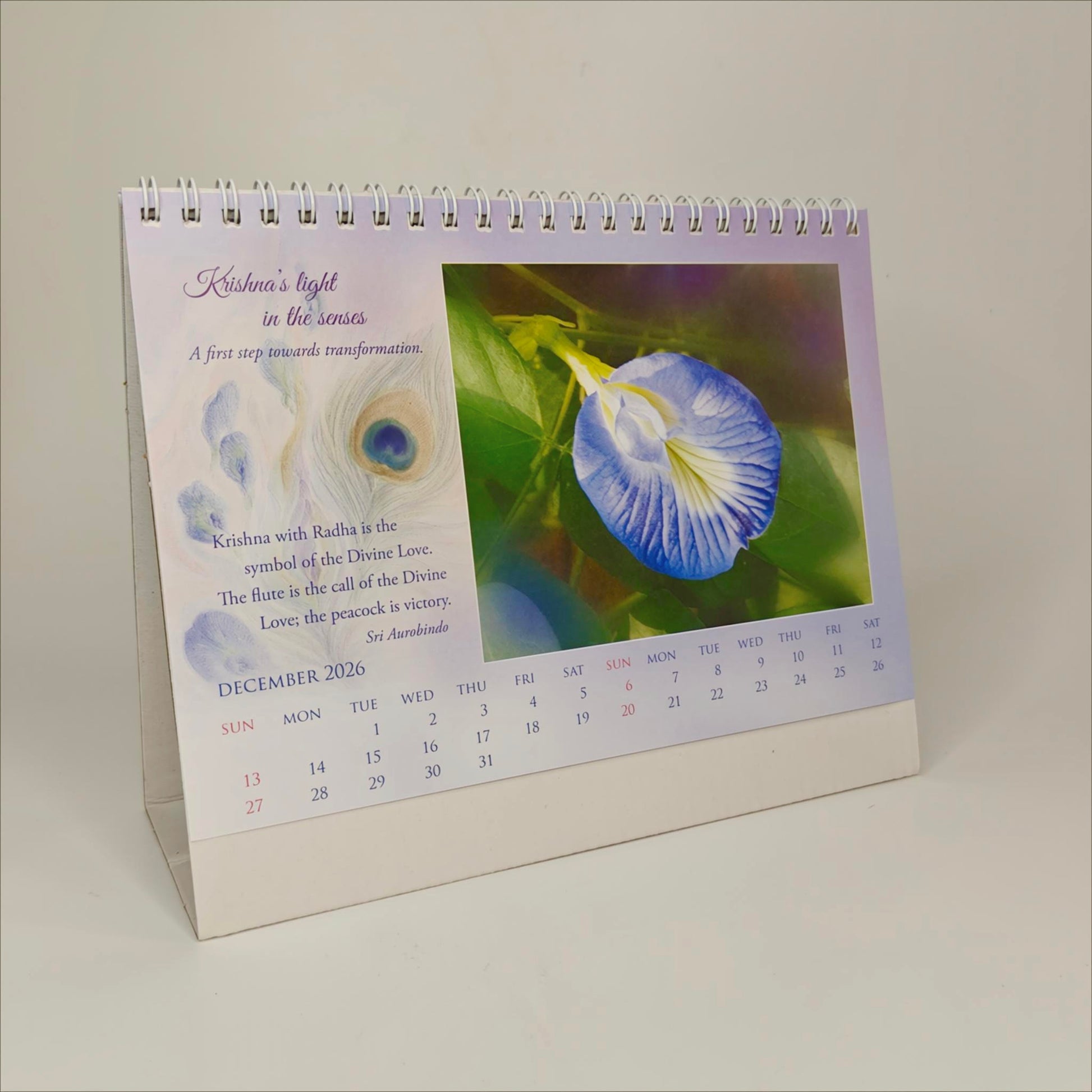 The Desk Calendar showcases 12 unique flower photos for each month, with their spiritual significance given by The Mother.